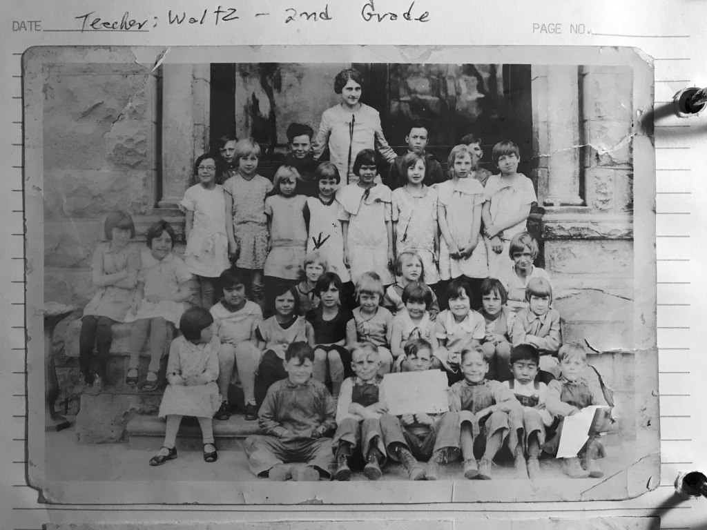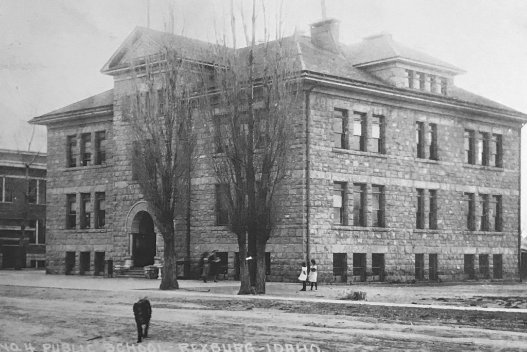 “My schooling started in Rexburg, Idaho at the Washington School. My first teacher was Miss Waltz. We all liked her. During recess I played in the swings, sliders, [unintelligible], and played jump the rope. At noon, I would go home to lunch as our hotel was only about a block from the schoolhouse.”